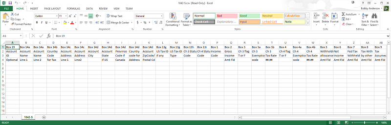 We provide spreadsheet templates for the 1042-S or any of the 1099 forms. However, you are not required to use those. The import process consists of mapping a spreadsheet by entering which columns are to be imported. Mapping is provided automatically for the provided templates. If you are not using the templates, for your existing spreadsheet, is not necessary to delete columns not used in the import process and no need to put the columns in a specific sequence.