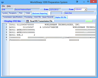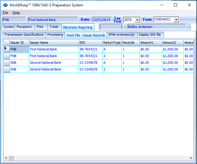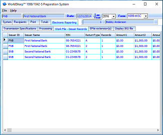 Once the data has been moved to the work file, this screen will allow operator to check amount totals and form types and counts before creating the electronic file.