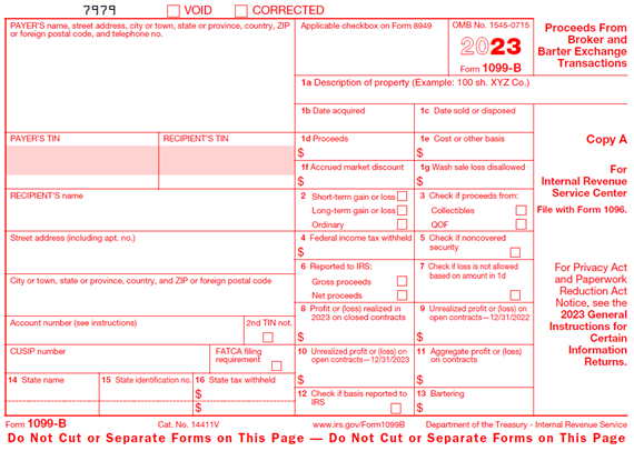 1099-B forms are issued by brokers or barter exchanges to report sales or barter exchanges of stocks, commodities, regulated futures contracts, foreign currency contracts, forward contracts, debt instruments, options and securities.