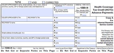 1099-H forms are issued by providers of health insurance coverage when they receive advance payments from the Department of the Treasury on behalf of eligible recipients pursuant to section 7527.