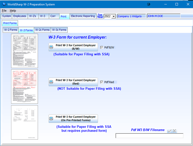 The W-3 can be printed in black and white, red or on preprinted forms.