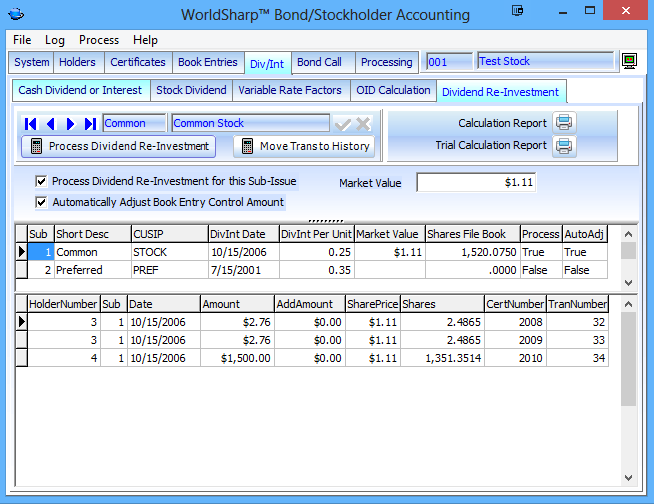 If the dividend re-investment feature is being used, those functions required to process those stockholders are available on this screen.