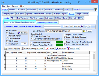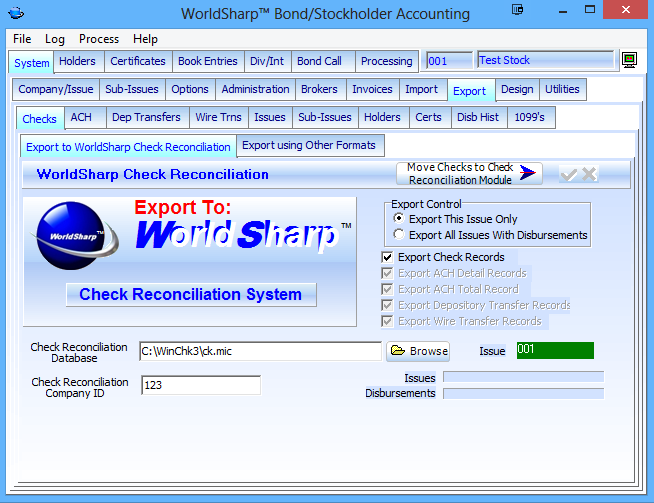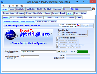 After dividends are calculated, if the WorldSharp Check Reconciliation System is being utilized, then then the information of the issued checks needs to be exported to that system.