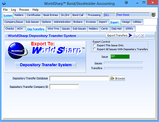 After dividends are calculated, if any of a depository (for example - CEDE) is to receive any of the dividends, then that information needs to be exported to the 'WorldSharp Depository Transfer System'.